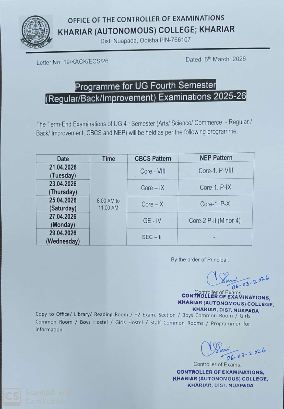 UG 4th Semester Term End Examination Program Notice